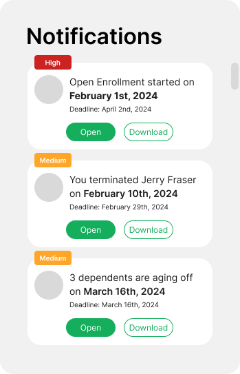 Simplify staying in-the-know year-round for admins to submit on-time open enrollment selections and perform efficient plan assessment.